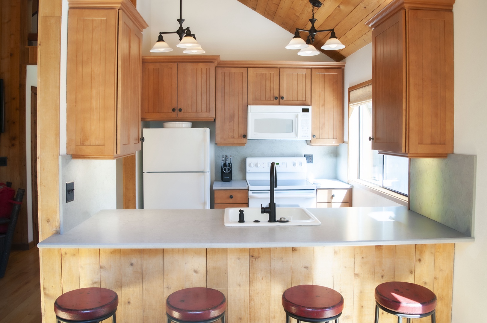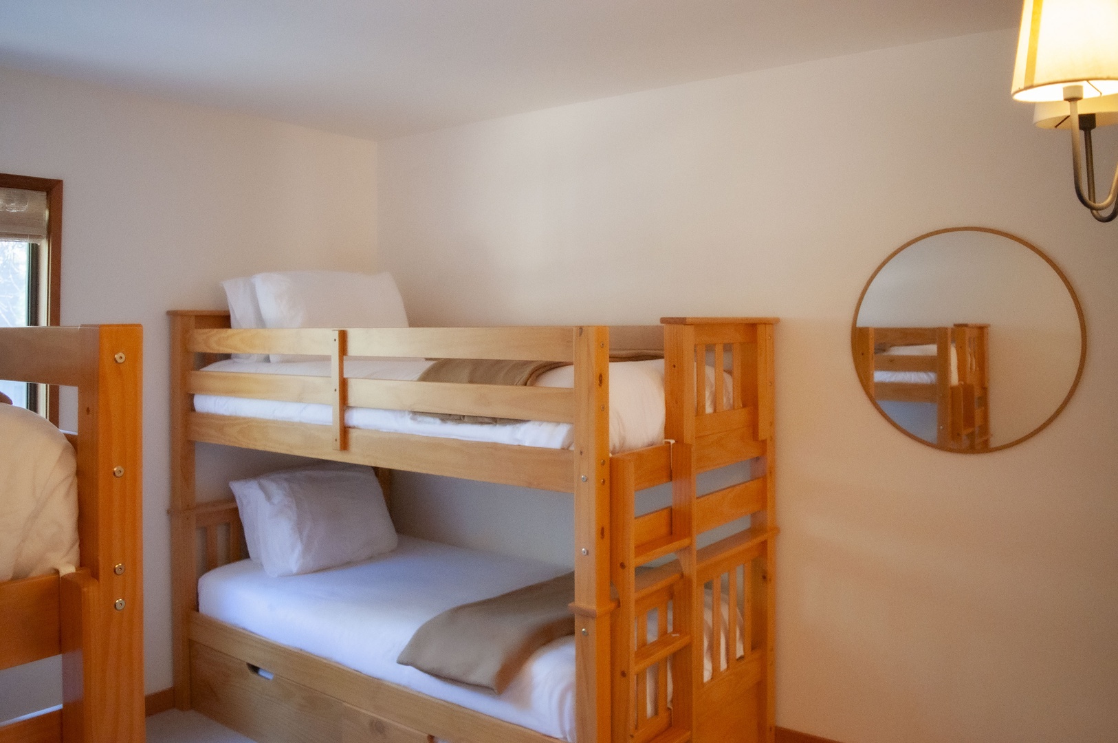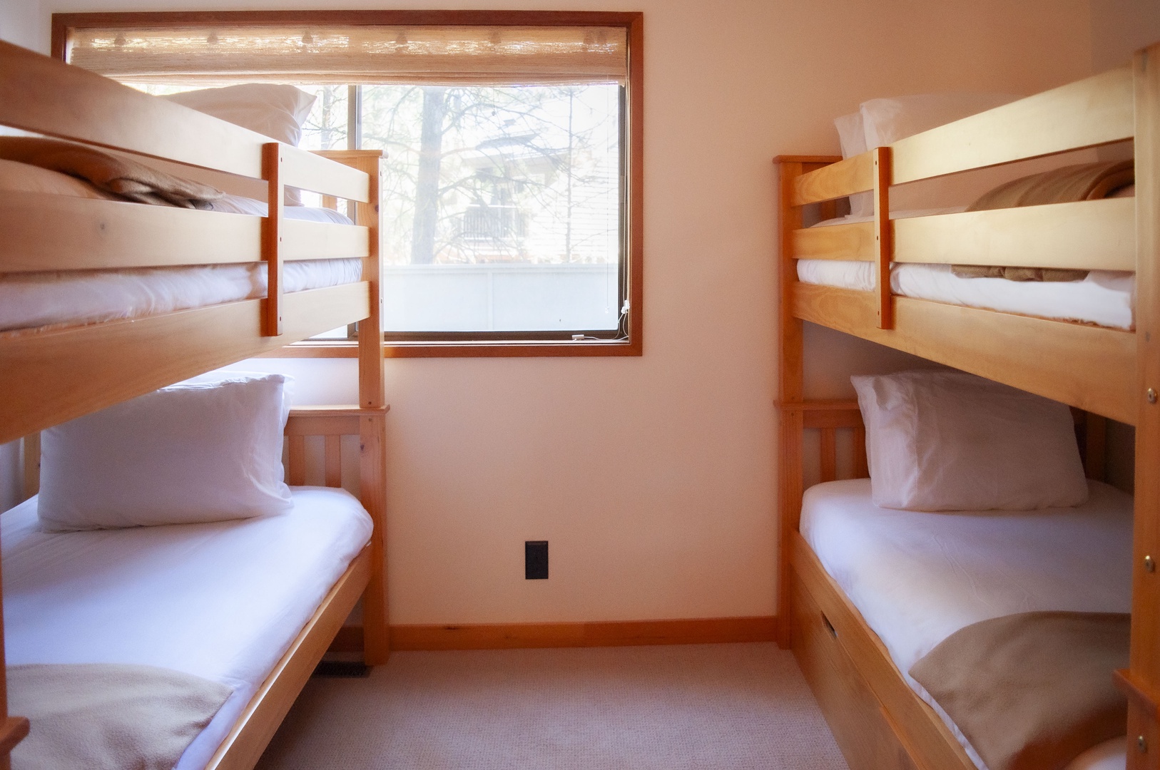The home accommodates up to 8 guests featuring three bedrooms, two on the main floor and one upstairs. Additionally, there's a small media room where kids can hang out and relax.