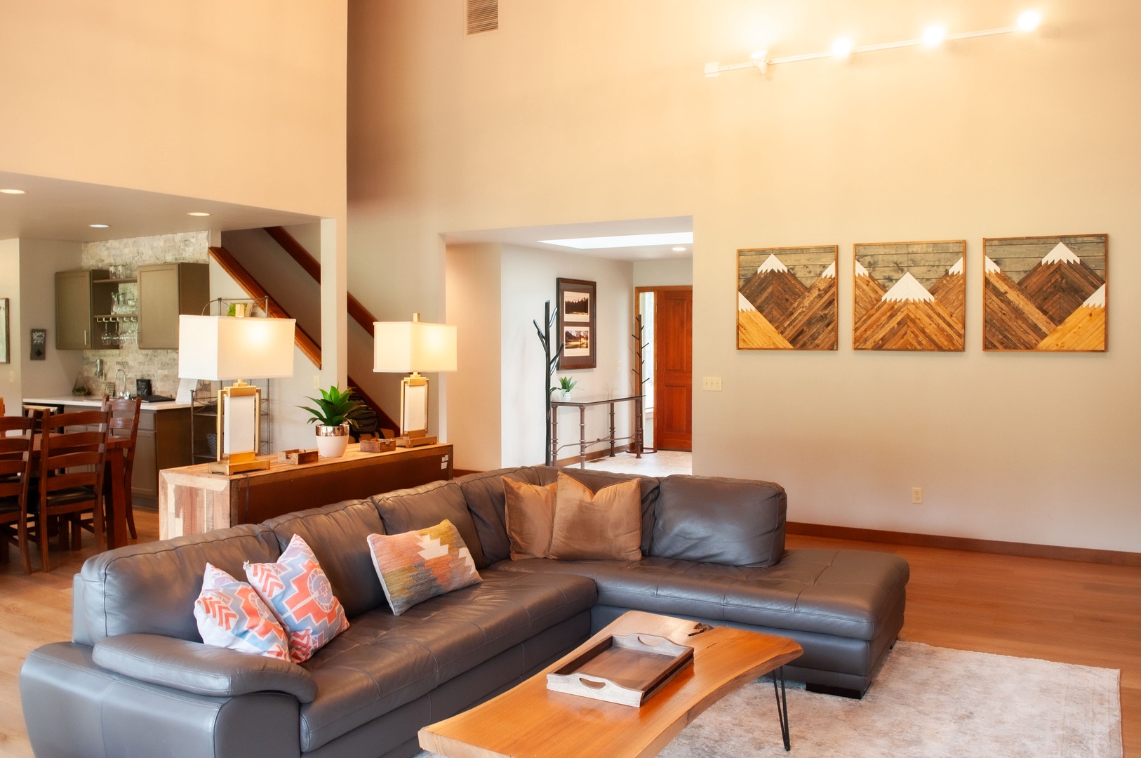 The spacious living area flows seamlessly into the dining room, remodeled kitchen, and convenient wet bar—an ideal setup for gathering with family and friends. Whether you’re sharing meals, playing games, or simply enjoying each other’s company, there’s room for everyone.