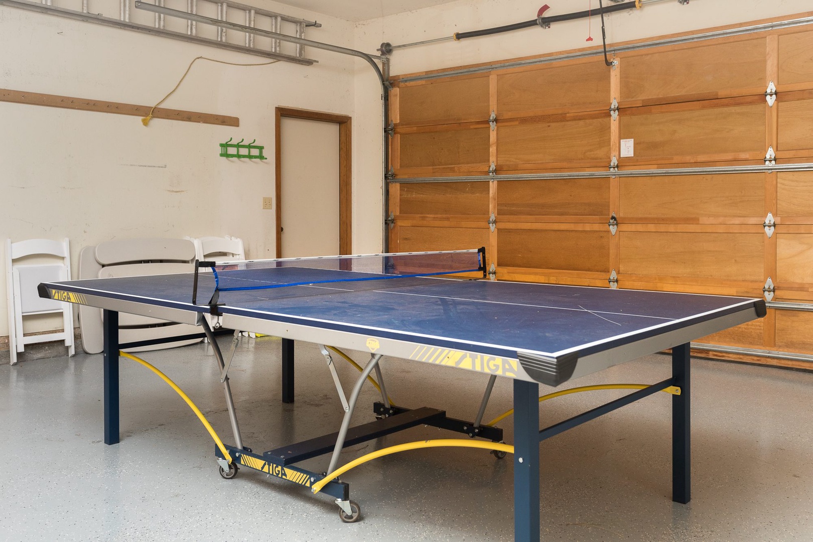 Head down the hall to find a large bonus room designed for unwinding after a day of adventure. Beyond this space is a primary King bedroom with its own private Ensuite, along with another King bedroom and a cozy bunk room featuring four twin beds—perfect for kids or extra guests. The garage has been transformed into a fun game room with table tennis (note: not accessible for parking).