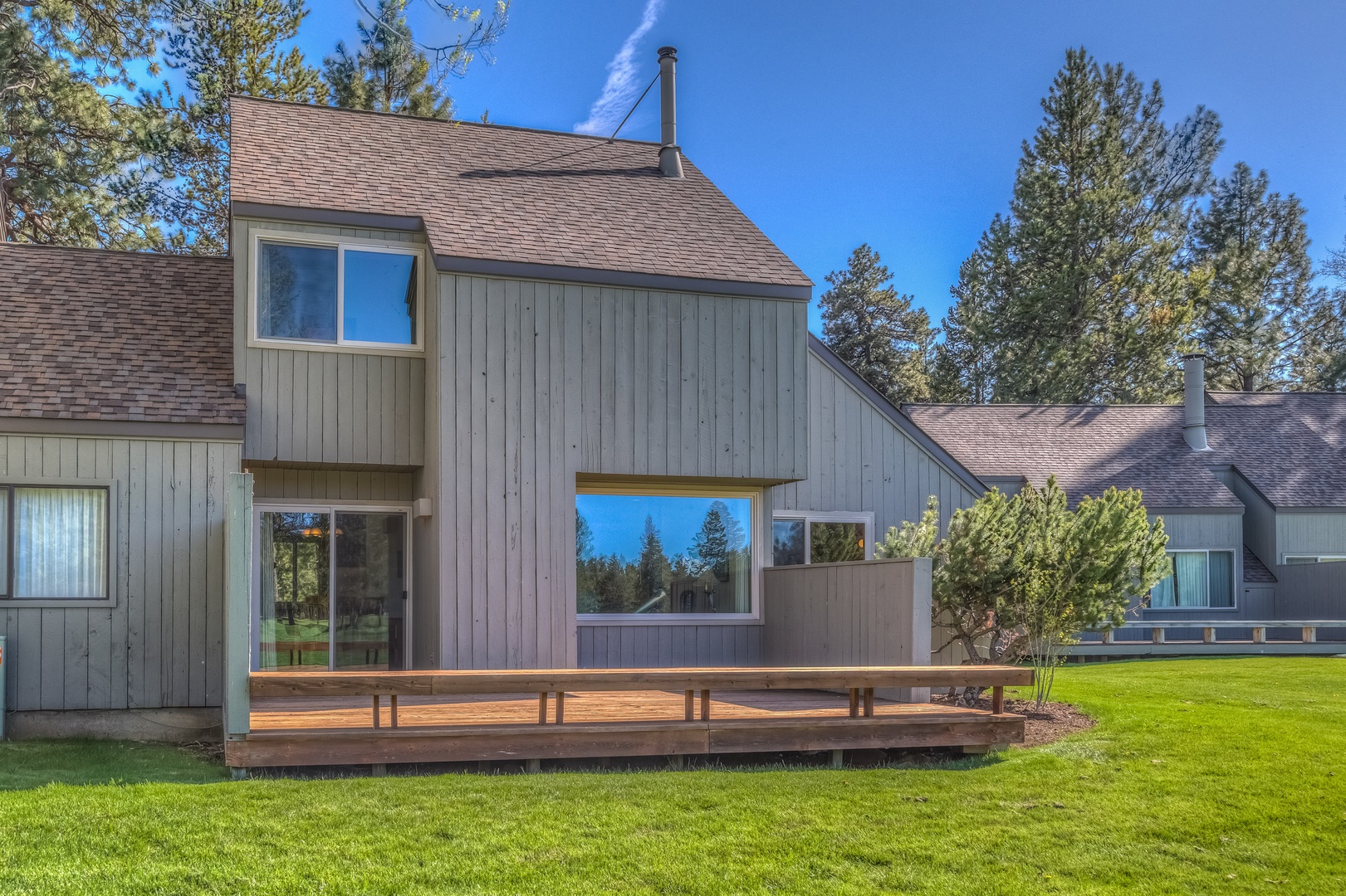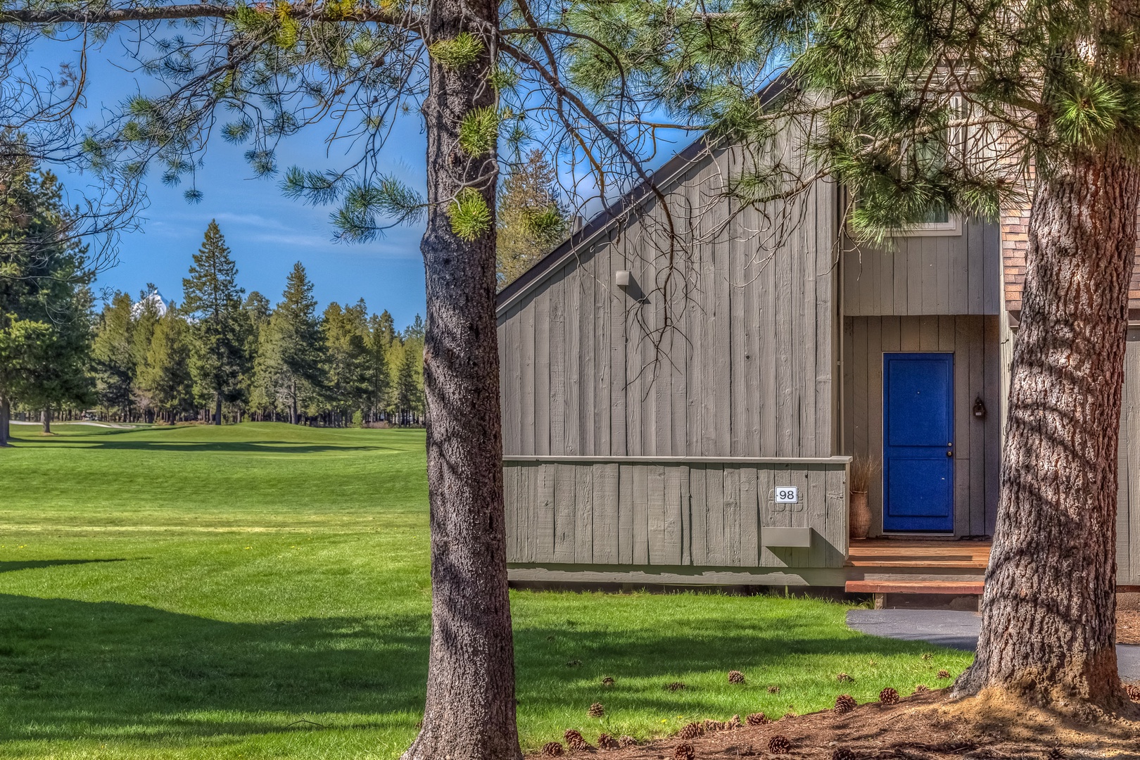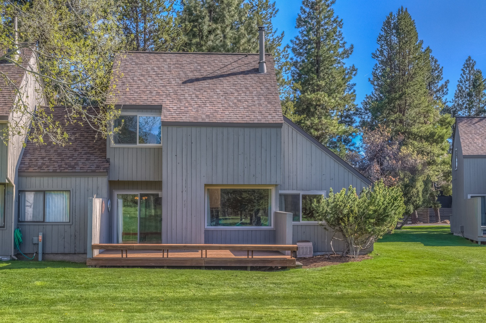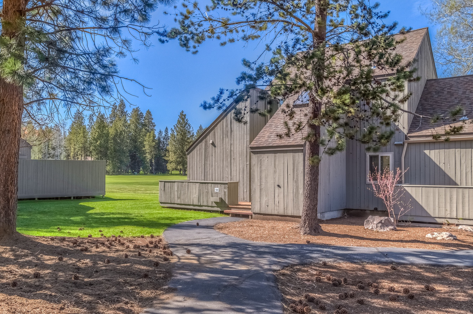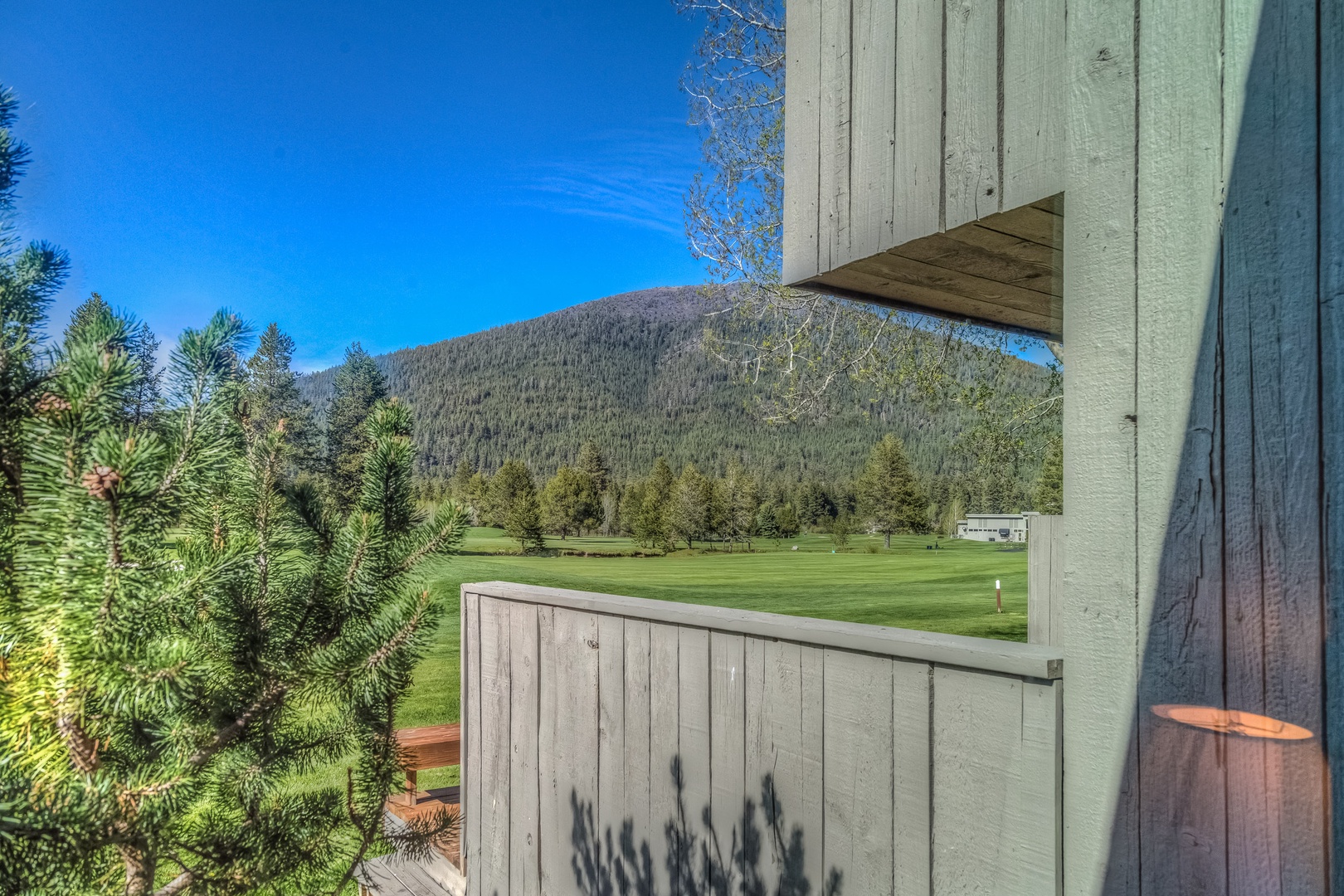 From the large deck enjoy the stunning view of Black Butte while you relax and BBQ! This peaceful setting in a quiet area of the Ranch overlooks the 18th fairway at Big Meadow Golf Course and is walking/biking distance to the club house, driving range, and Robert’s Pub.