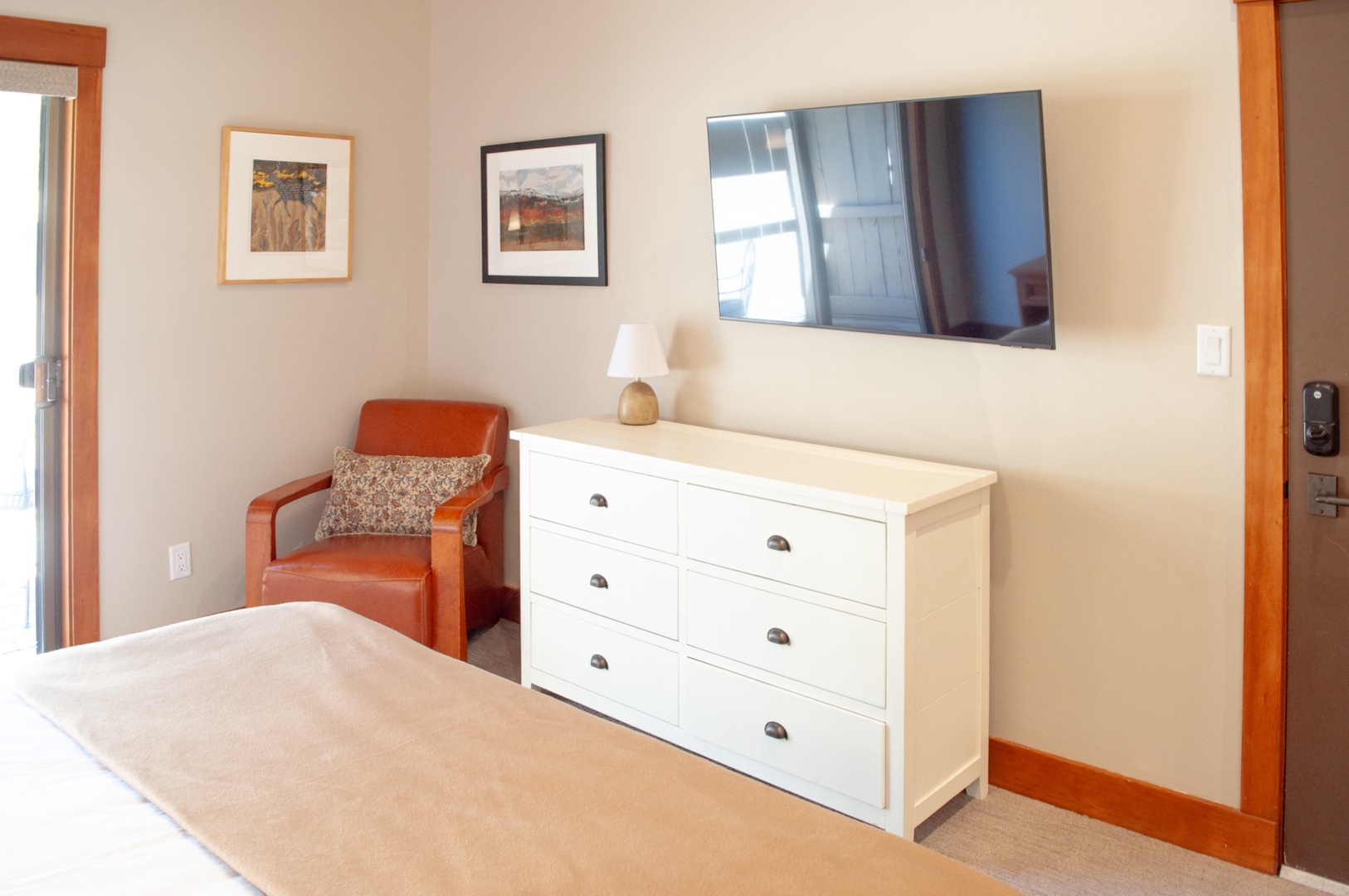 Discover comfort and convenience in this newly updated lodge room, perfect for your next getaway. This cozy retreat features a single bedroom with a plush king-sized bed, ensuring a restful night's sleep. The room is equipped with modern amenities, including air conditioning and heated bathroom floors for your comfort.