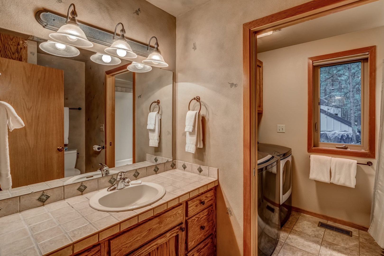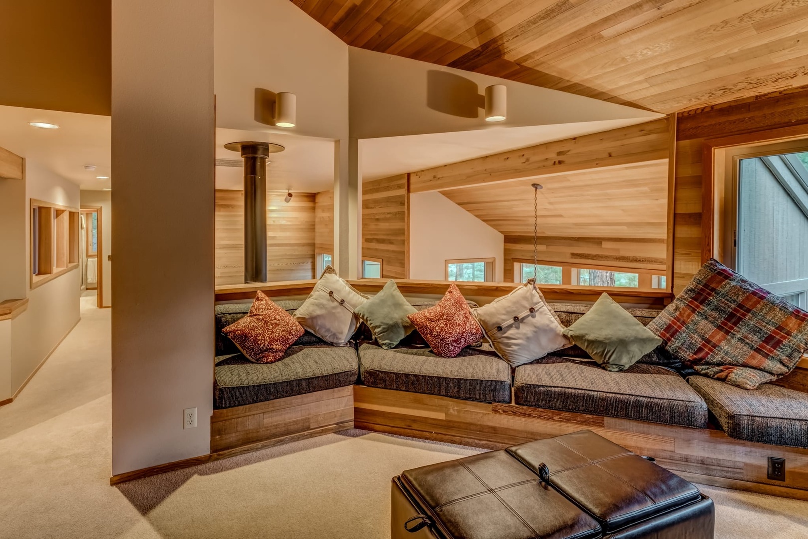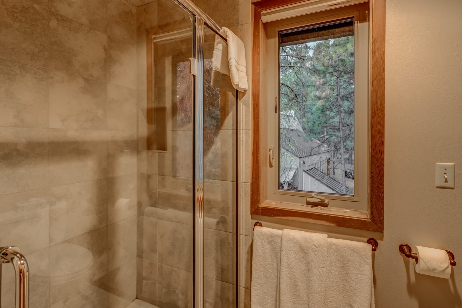 Beautiful cozy family home backing up to forest service land. To the left of the entry is the beautiful family room with cathedral ceiling, wood burning stove and a view out to the private forest service land behind the home. A well-appointed kitchen with bar stools flows from the family room. Down the hall is a bedroom with twins, a bath and laundry room. Upstairs two additional bedrooms – one with a queen bed and a second with two queens. The upper level also has a large game and TV room for lounging and relaxing in the evenings. Easy walking distance to the South Meadow pool and tennis area and a short bike ride to GMRC. You can also take an easy ride or nature walk across Big Meadow.