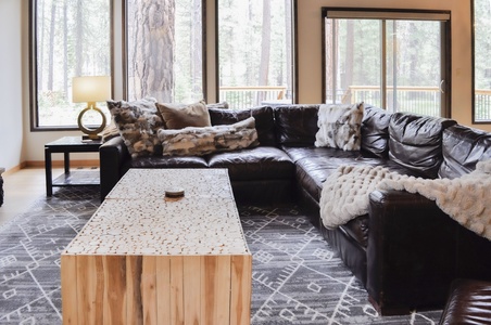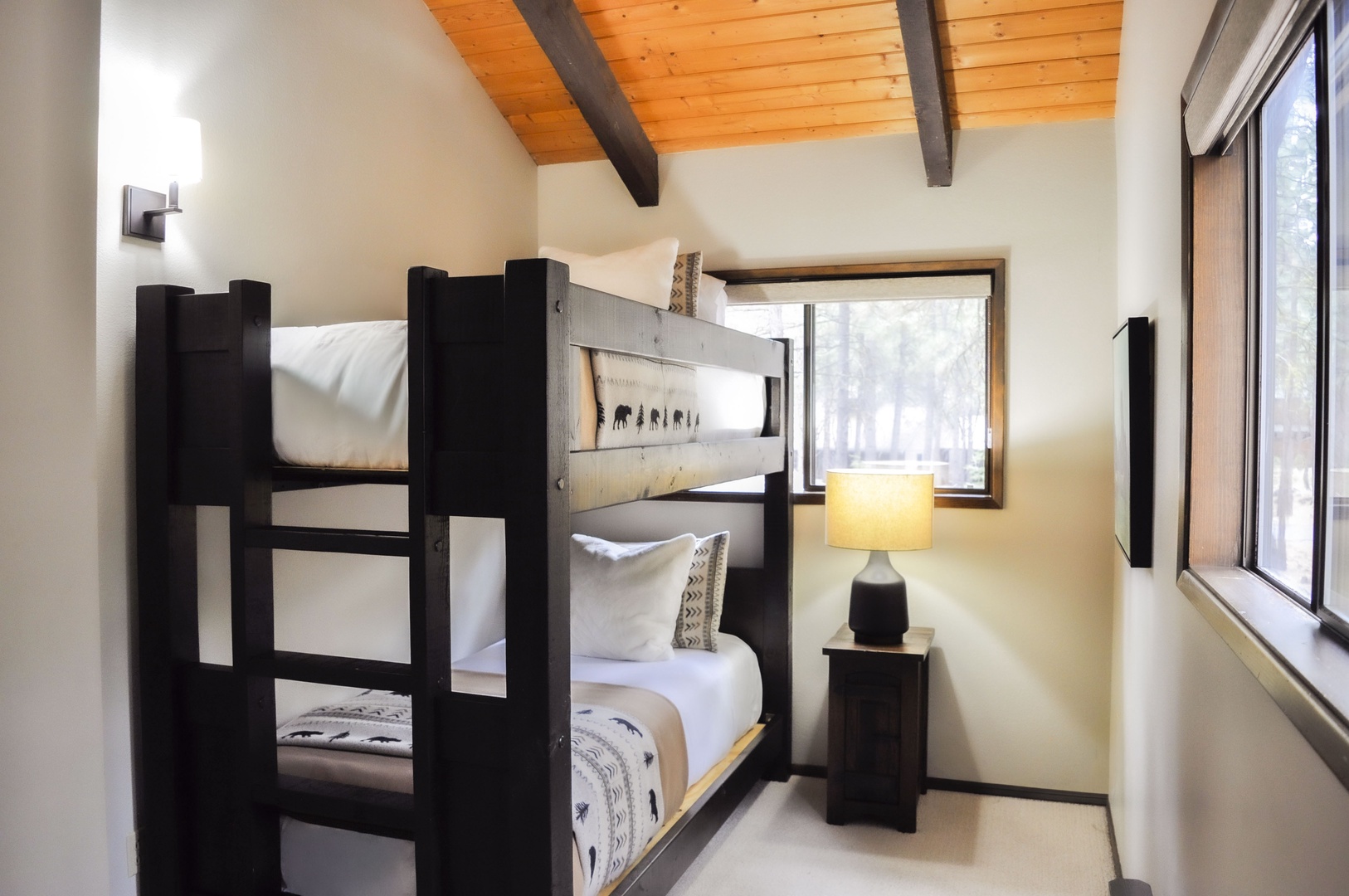This beautifully updated South Meadow home sits in the heart of Black Butte Ranch, blending lodge-style warmth with modern updates. The layout includes three bedrooms and three bathrooms, with a main-level primary suite featuring its own ensuite retreat. Upstairs, youโll find a queen bedroom and a bunk roomโperfect for family or guests.
